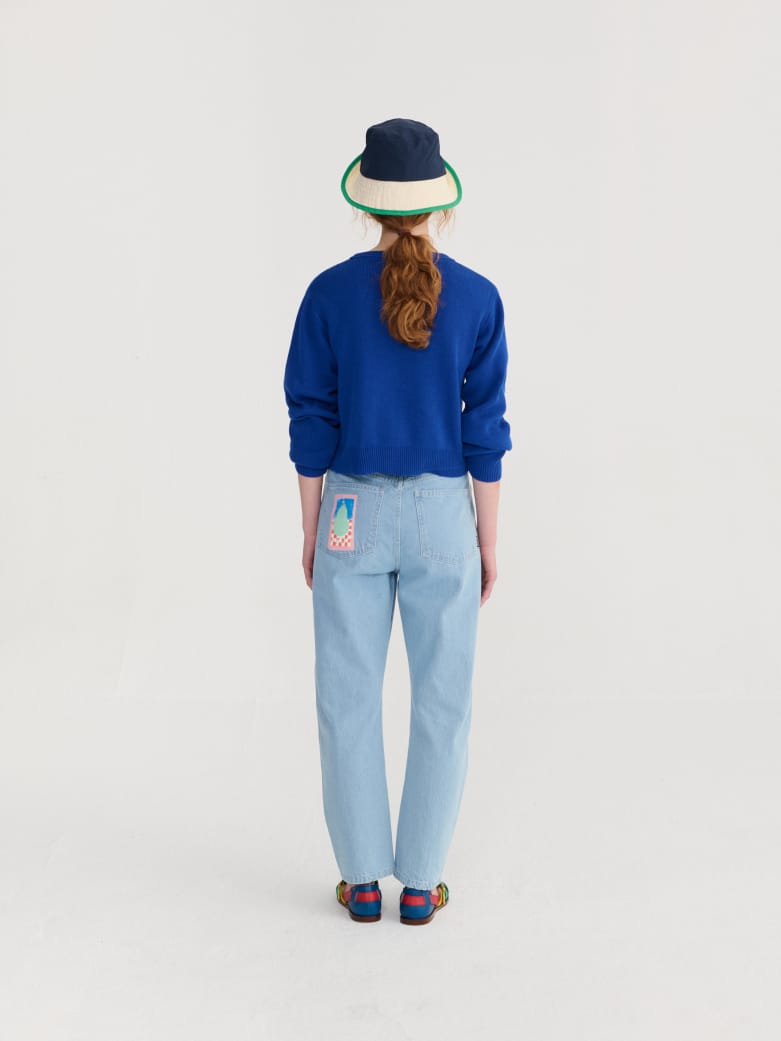 Oversize cropped cardigan with playful bird print.