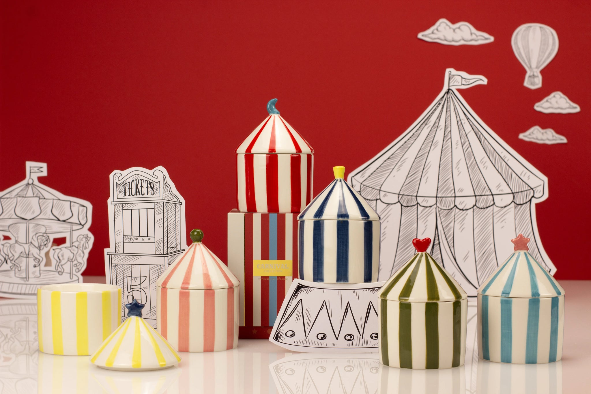Housed in a striped ceramic vessel inspired by a classic circus tent, this candle with a lid brings playful charm with bold red stripes that elevate any space. Part of the Carnival Collection, it’s as much a decorative piece as it is a candle. Once the rich fruity scented blend Plum & Pomegranate has burned down, the jar can be reused as a keepsake container or display accent. At Zesty Lemons London we use sustainable plant based waxes. We choose to use a rapeseed and coconut blend wax as it is sourced from the UK and Europe rather than the typical soy wax candles that is imported from Latin America. The Finer Details: Dimensions: 8cm x 8cm x12xm Wax Capacity: 180g Packaging: This product is packaged in a hard branded gift box. |