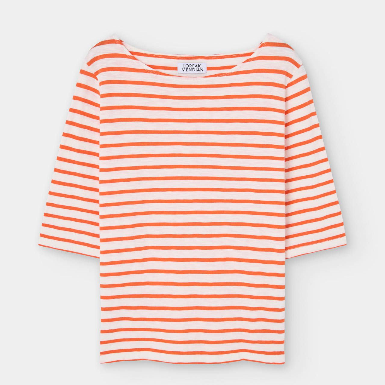 Organic cotton striped T-shirt, regular fit with boat neck and short sleeves. Paint detail on the back.
