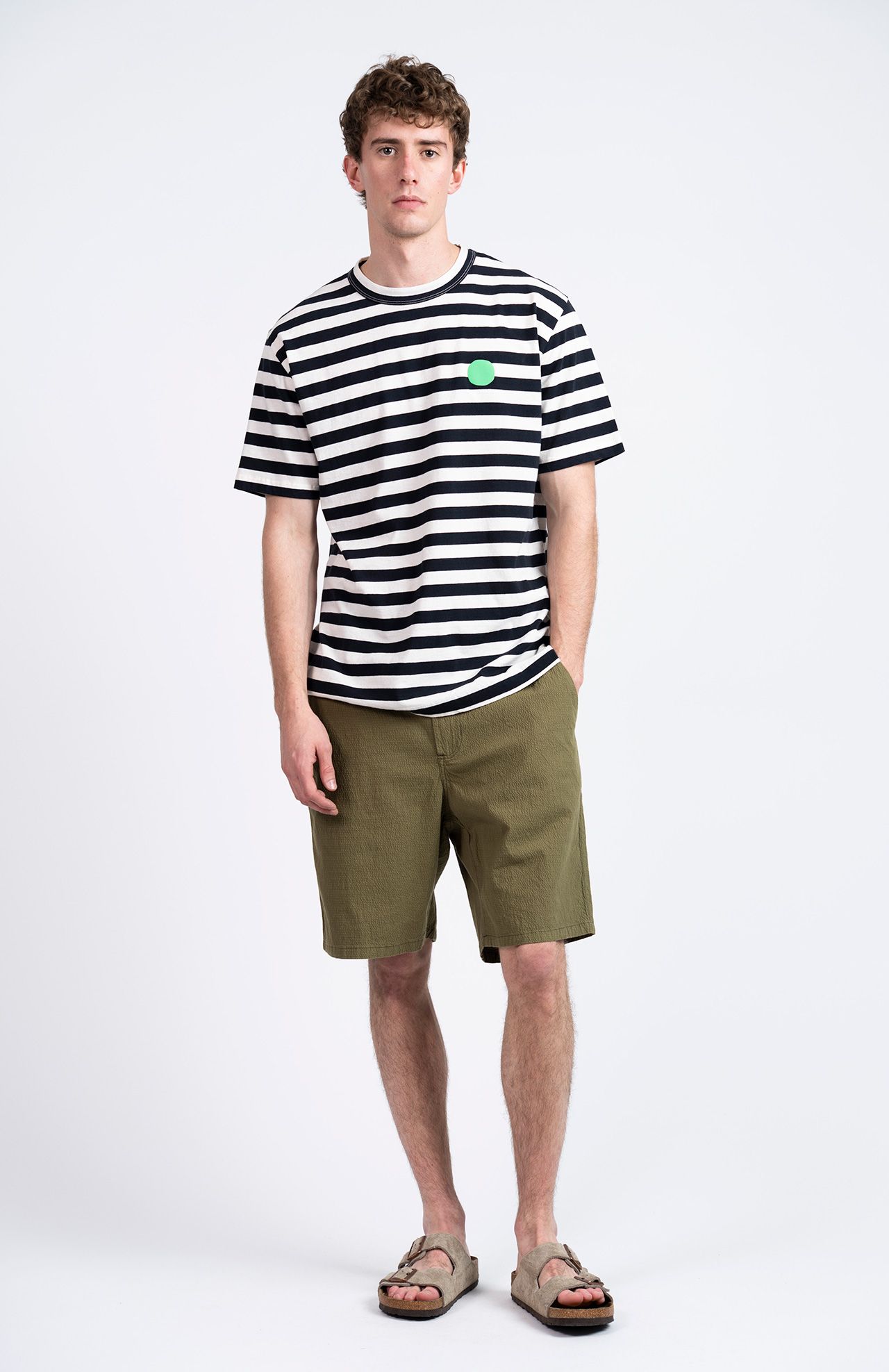 Short-sleeved striped T-shirt with a regular fit. Dot detail on the chest.
