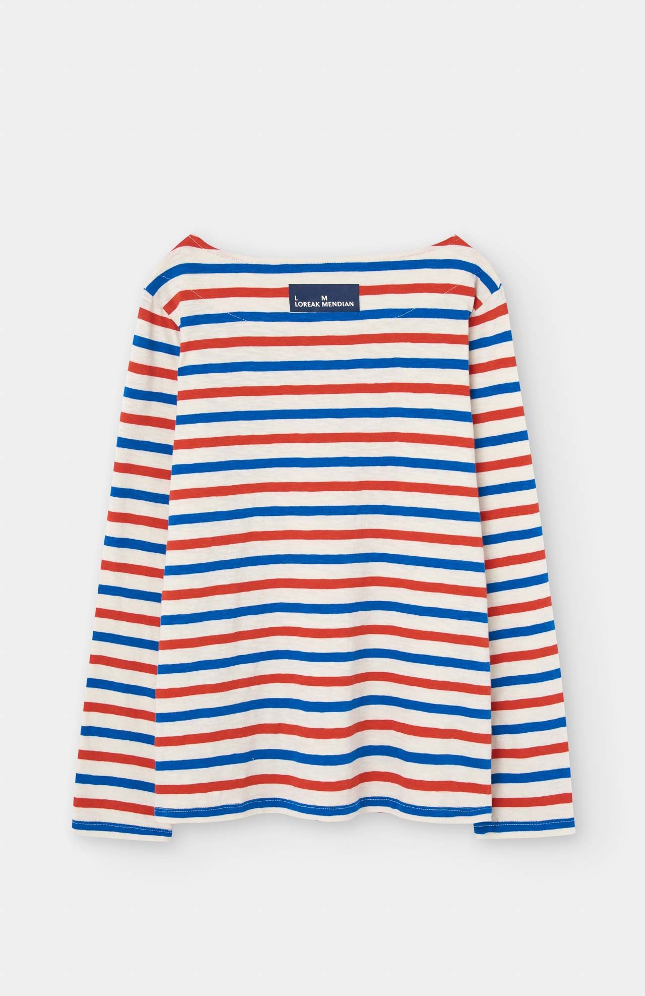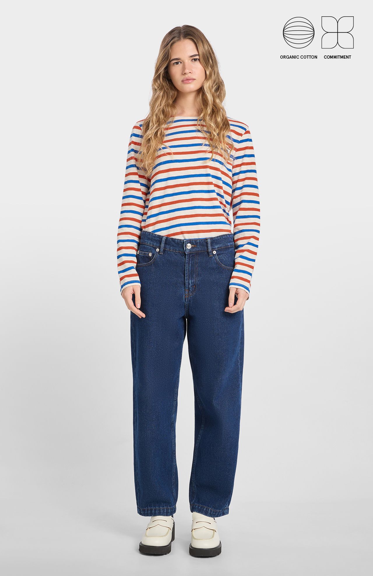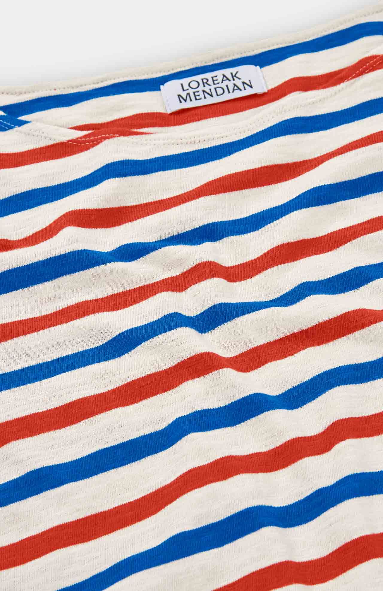 This striped boat neck T-shirt plays with contrasting colours to give your outfits a fun and casual look. Made from organic cotton and with a special detail on the back.