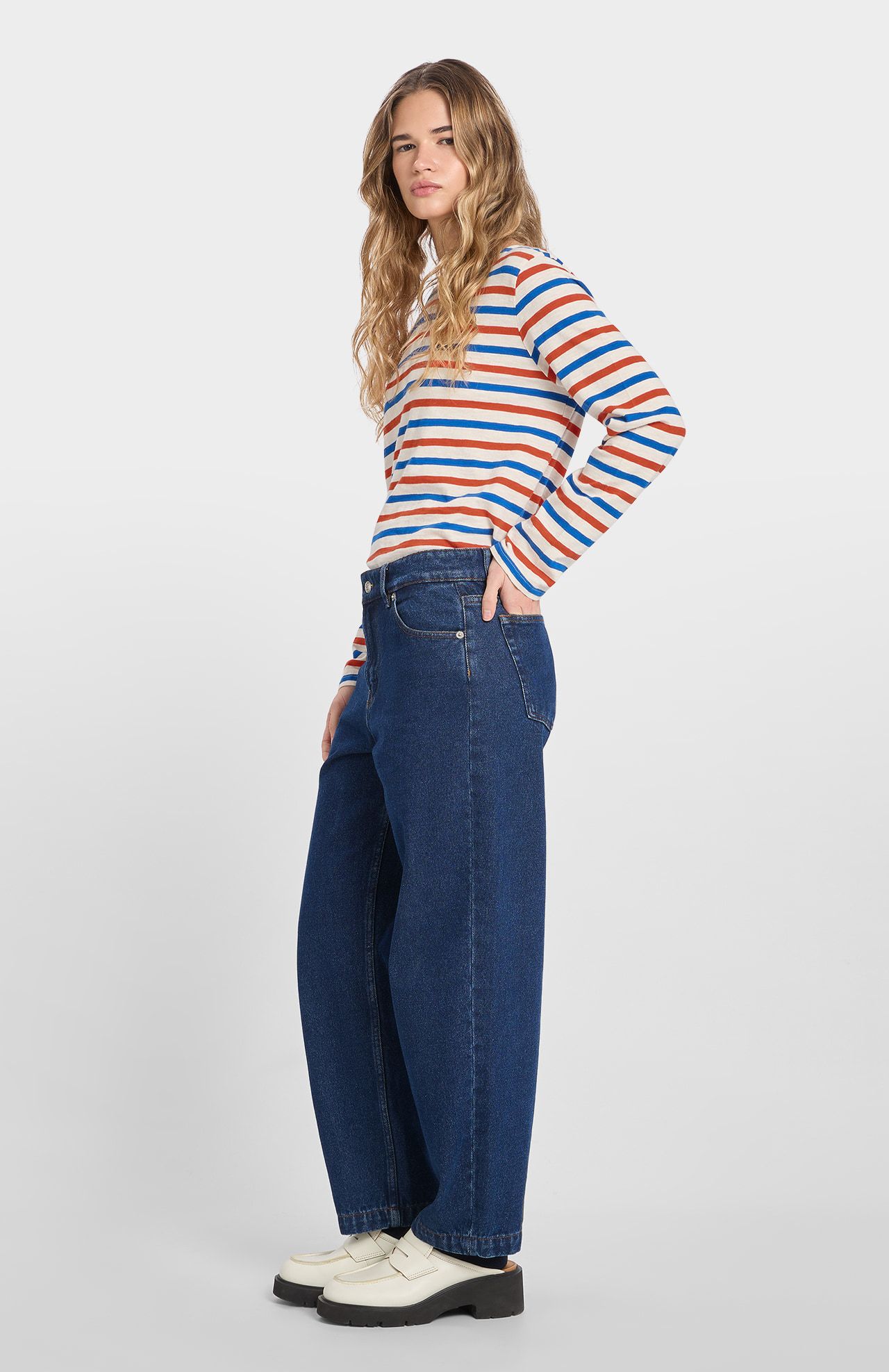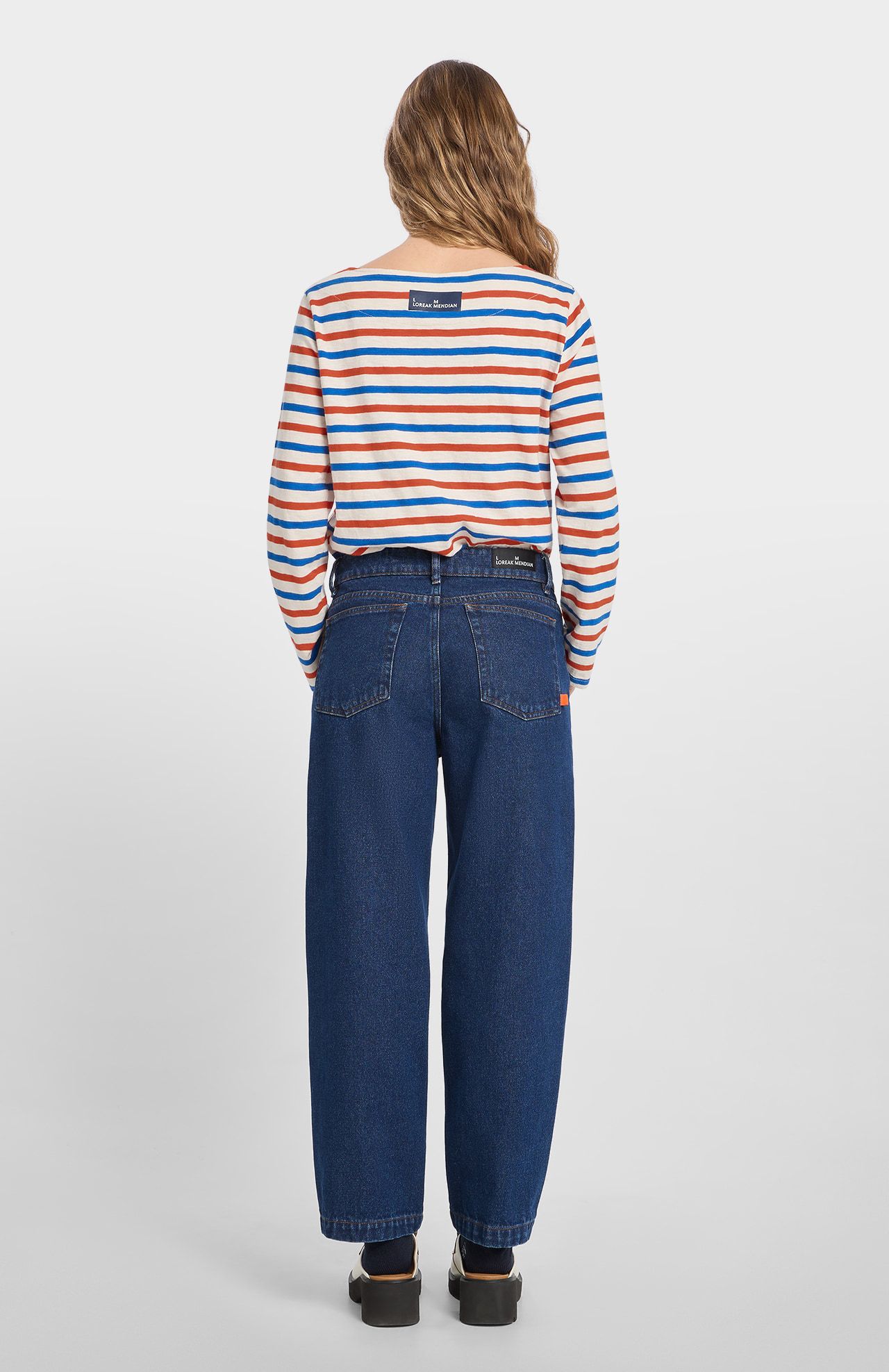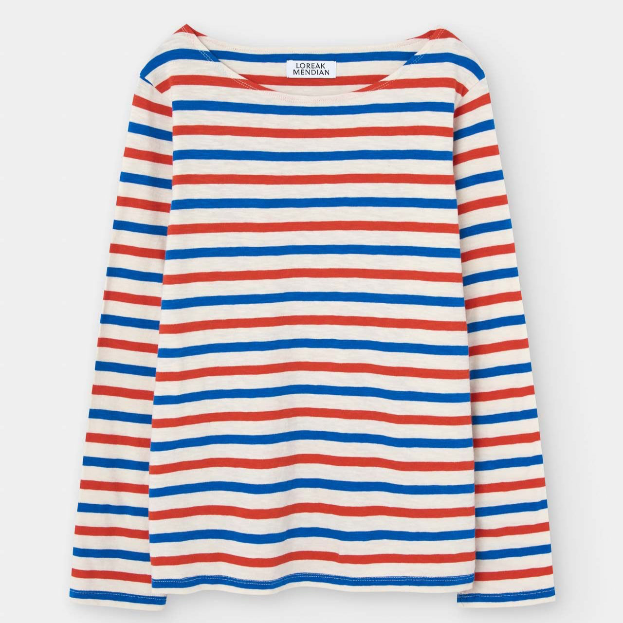 This striped boat neck T-shirt plays with contrasting colours to give your outfits a fun and casual look. Made from organic cotton and with a special detail on the back.