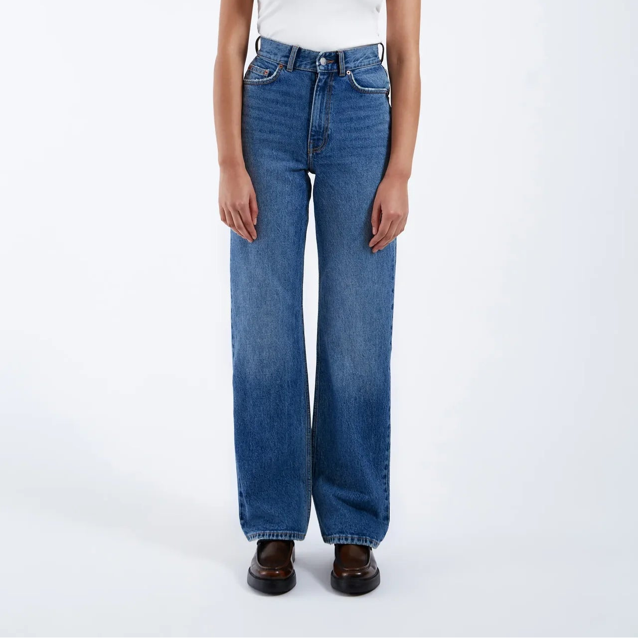 Regular fit, snug across seat High waist Straight leg Classic 5-pocket Zip fly Low stretch denim fabric Made in Pakistan The model is 174 cm tall and wears size 26/34 These jeans are made from comfort stretch denim, featuring 99% cotton and 1% elastane. The fabric offers moderate flexibility, providing a comfortable fit that moves with you while maintaining the structure and feel of a rigid, classic denim look. 99% Cotton, 1% Elastane inseam 30", 32" and 34" |