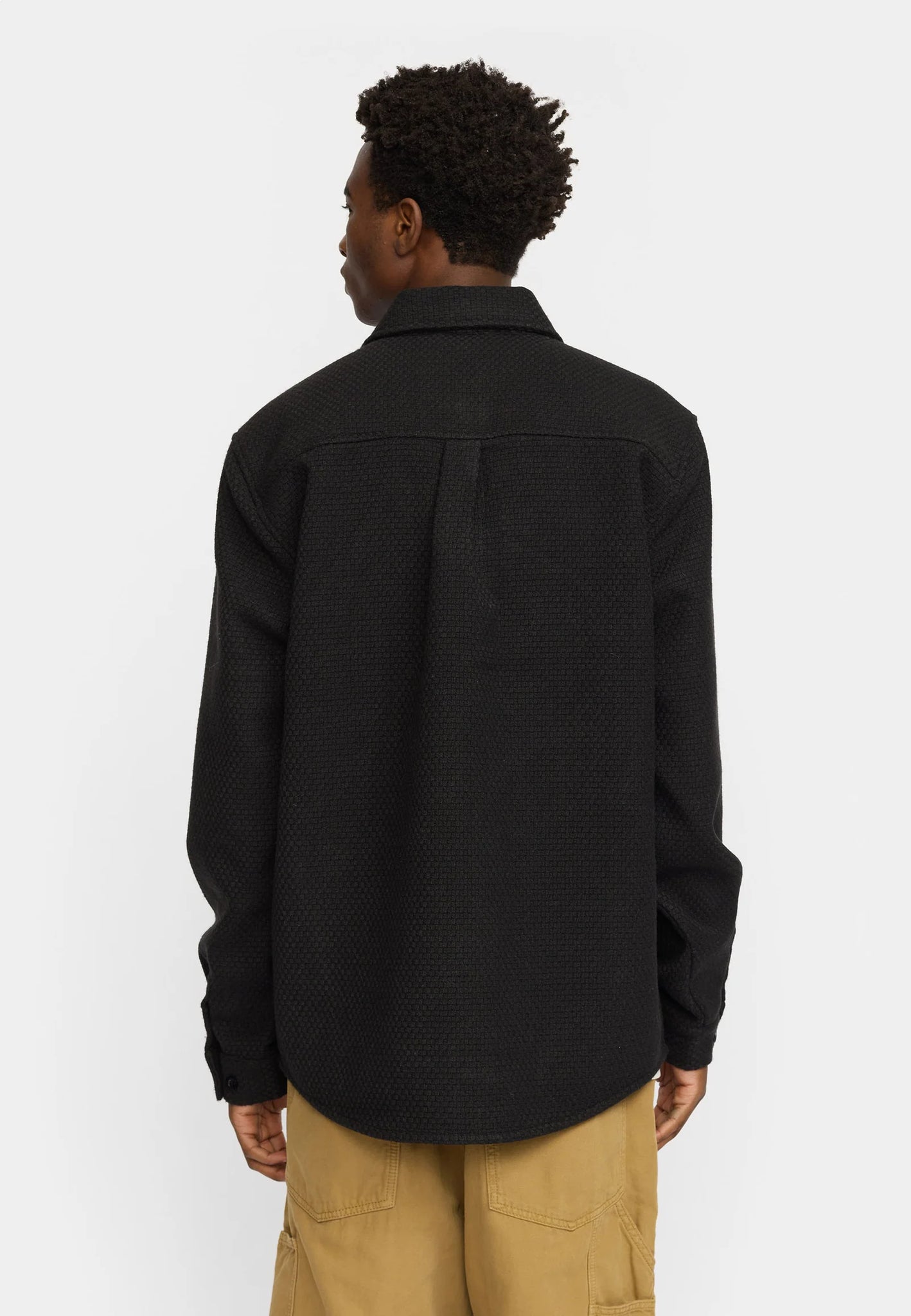 This overshirt is crafted from a super heavy-weight polyester mixed fabric, with a soft, warm surface. The appealing structured woven pattern gives character to the overshirt, which is constructed with characteristic square utility chest-pockets, a front placket finished with tonal buttons and adjustable sleeve cuffs. The neck-loop is made for easy hanging of this shirt, and for extra comfort it is constructed with a traditional double-layer back-yoke with a box-pleat, which gives you better room for mobility. Wear it as a warm everyday shirt through the cold season, or layer it over a printed t-shirt or a sweatshirt for a casual look.