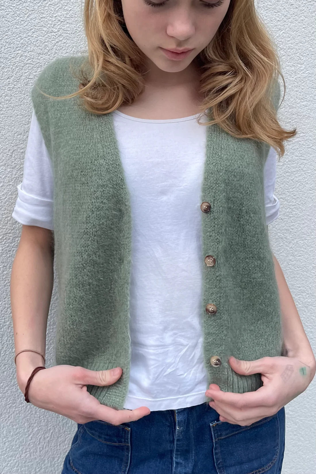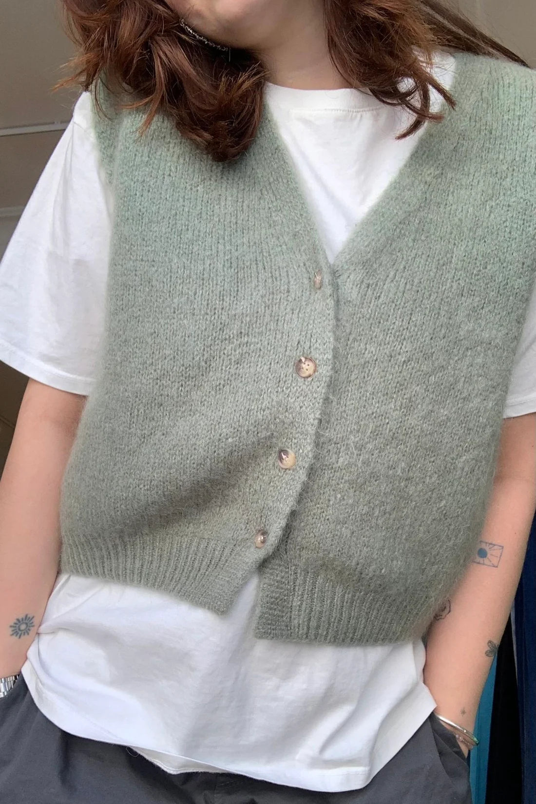 ØST is an East London based Danish design-team creating timeless pieces of clothing, footwear and accessories. The sleeveless design comes in several colours and has a deep V-neck and ribbed-knit trims. It is super soft and warm made in a mohair mix. The knitted vest is the perfect layering piece, use it over a dress, a shirt or a t-shirt or use it on its own.   |