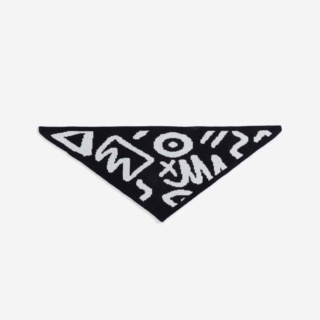 Bring back ’90s nostalgia with the Doodle Black Wool Triangle Scarf. A bold black base with white zig-zags, squiggles, and abstract shapes creates a fun, graphic statement.
