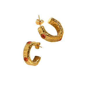 WHITE LEAF | Textured Hoop with Inset Cubic Zirconia | Orange & Gold