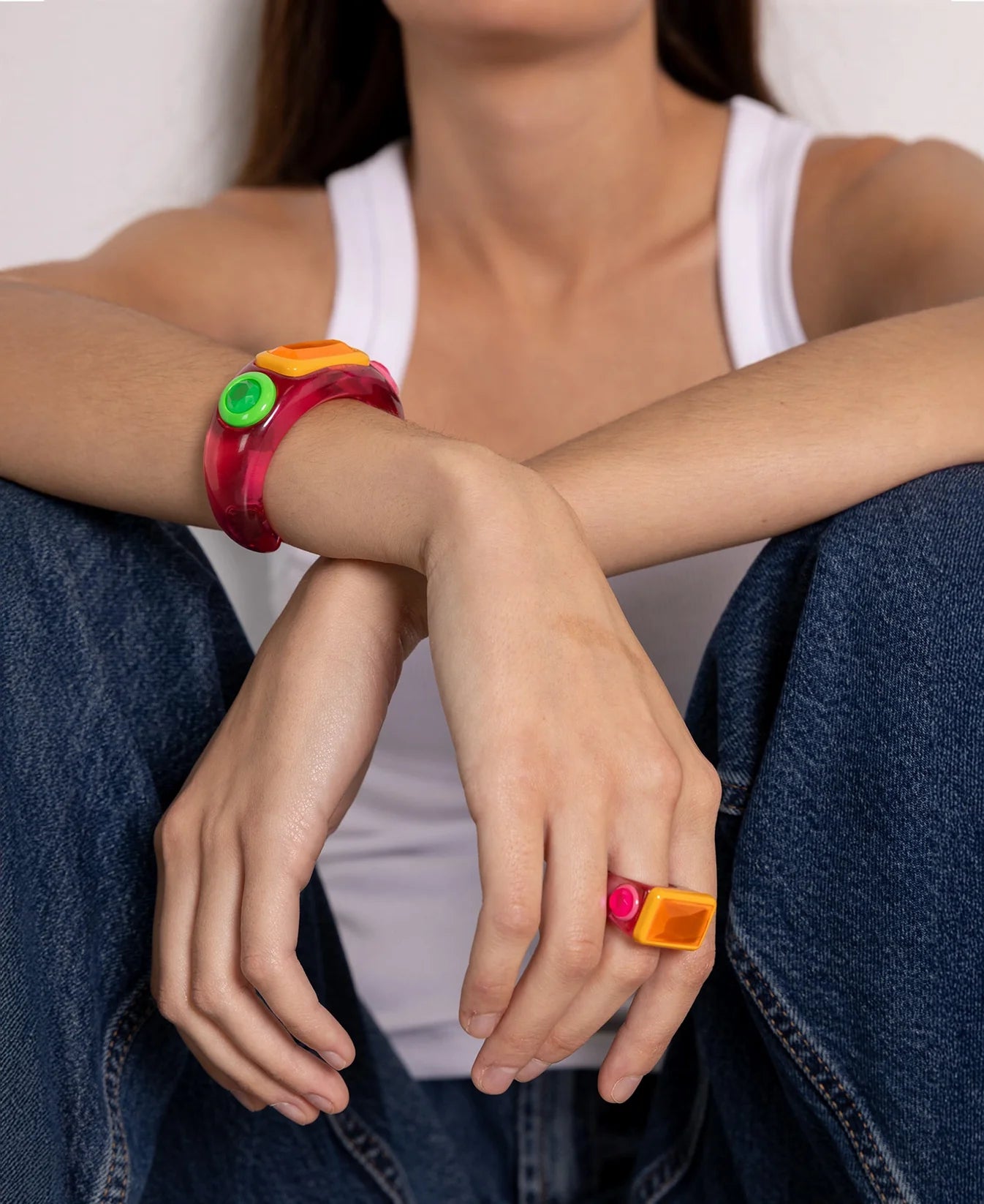 Bold and full of energy. The Pink Glow Ring features glossy resin with vibrant shapes and contrasting tones. This statement piece adds a bright pop of colour to any look.