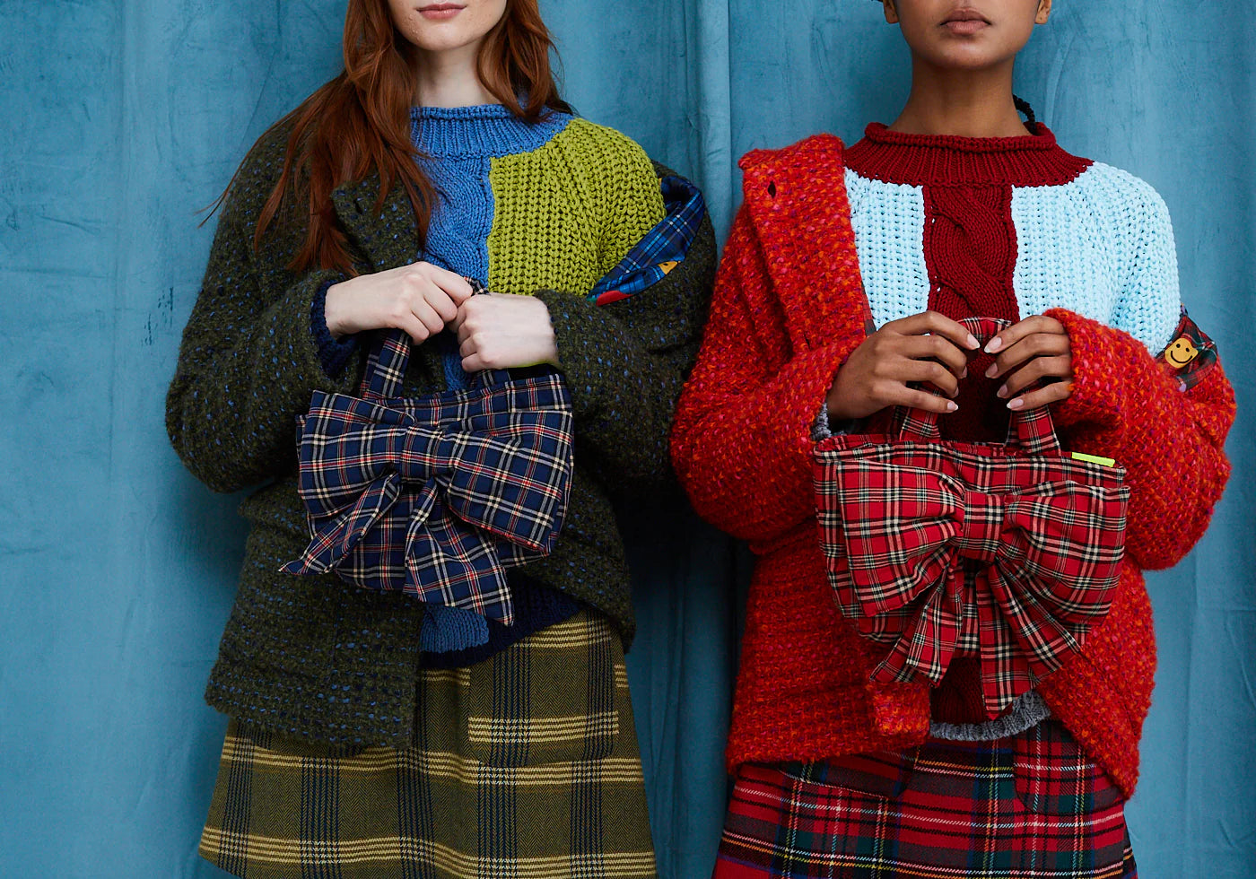 Designed to stand out. Mini padded bag in blue tartan fabric.