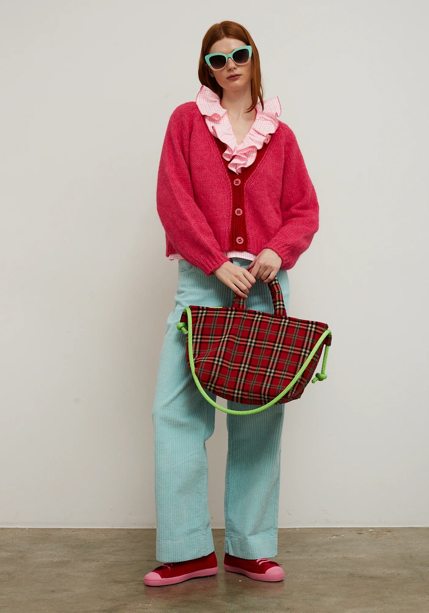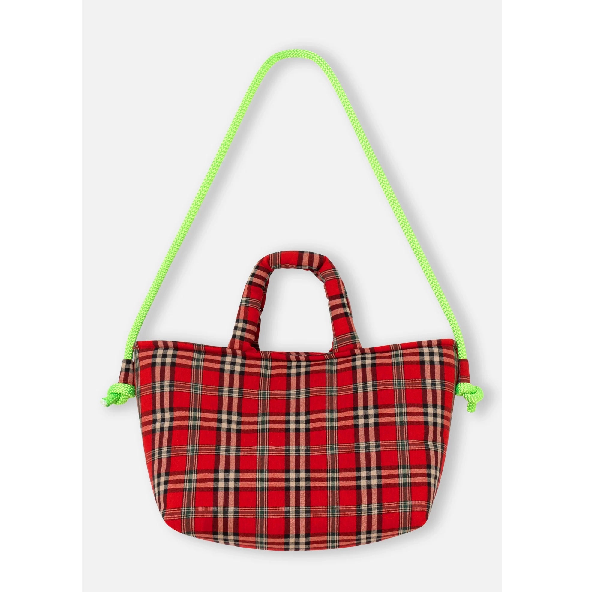 The happiest bag of the season. Padded bag with red plaid fabric. It has comfortable short handles and a fluorescent cord that gives it the coolest touch. Ideal to carry however you like: in your hand or crossbody. Inner pocket for more convenience and neon color XL inner label. Inner magnetic button. Light, soft, and full of style. Size guide Production: Designed and made in Barcelona. About the brand: Dopamine fashion to fill your closet with colour. Dr Bloom was born in Barcelona in 2012 out of fun and a need for something different. The brand loves art, creativity and fun. They design differential collections with 'mood playful' for women who have fun dressing up. They create vibrant garments with the intention of making you feel radiant. Dr Bloom produces in small small workshops in Europe for direct control over production with an ethical vision of the entire chain. They are committed to local production, sustainable packaging and the use of natural, recycled or ecofriendly fibers. They believe that a better fashion industry is possible and are working little by little towards greater sustainability. |
