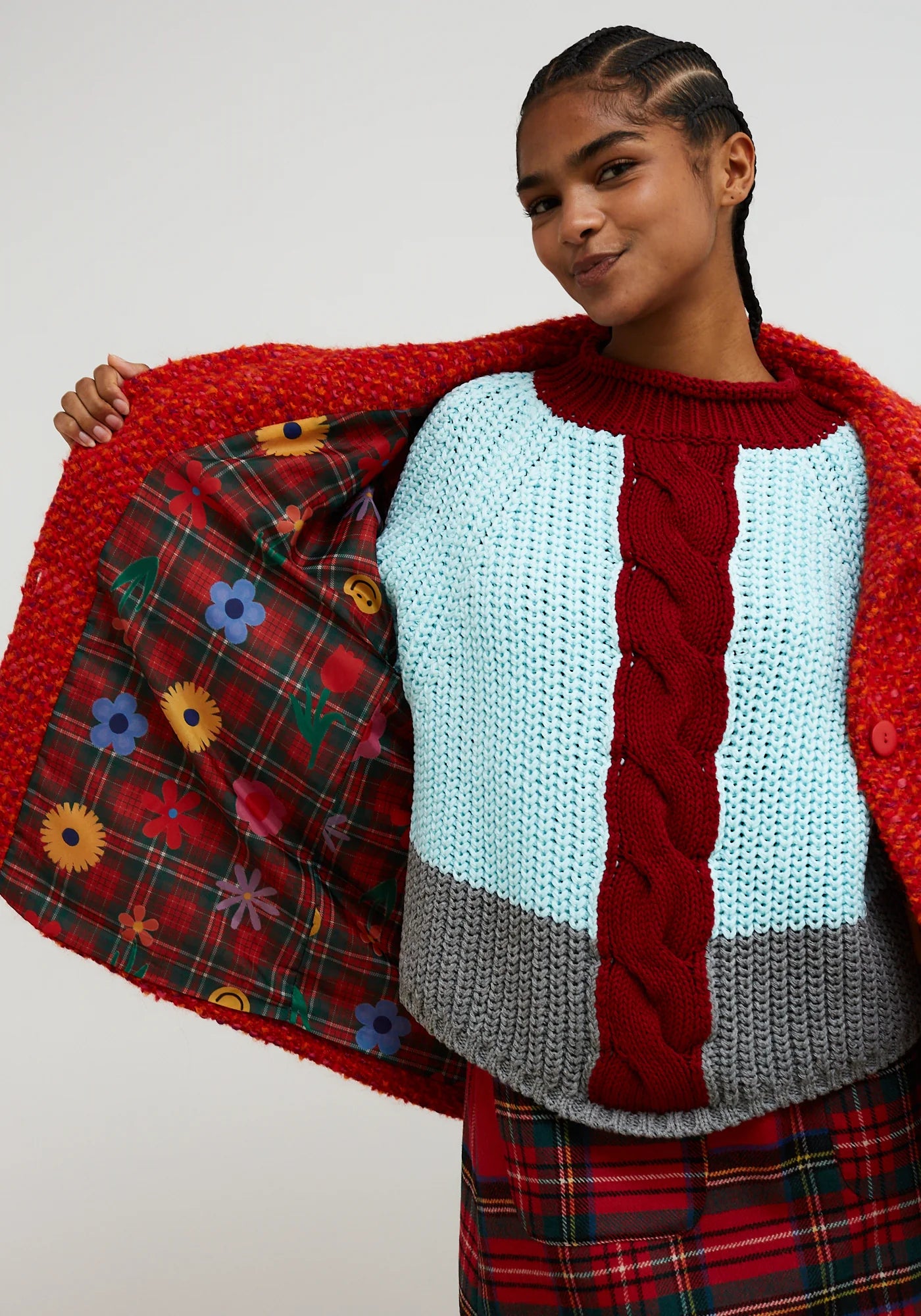 The perfect combination of style and functionality. Red wool coat, with palette threads in shades of red and orange that add texture and warmth. Straight cut and oversized silhouette. Features a classic collar, front closure with matching buttons, and large front flap pockets. Fun lining detail with a print of tartan checks, flowers, and smileys. Features Production: Designed in Barcelona, made in Italy. About the brand: Dopamine fashion to fill your closet with colour. Dr Bloom was born in Barcelona in 2012 out of fun and a need for something different. The brand loves art, creativity and fun. They design differential collections with 'mood playful' for women who have fun dressing up. They create vibrant garments with the intention of making you feel radiant. Dr Bloom produces in small small workshops in Europe for direct control over production with an ethical vision of the entire chain. They are committed to local production, sustainable packaging and the use of natural, recycled or ecofriendly fibers. They believe that a better fashion industry is possible and are working little by little towards greater sustainability. |