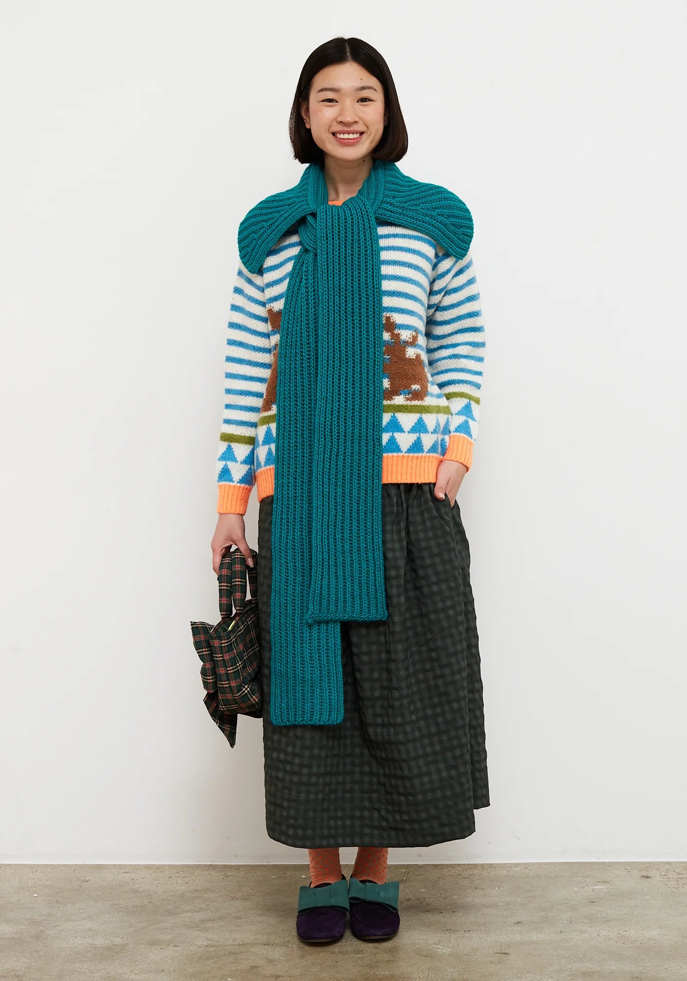 Provides warmth and a distinctive touch to the look. Thick knit scarf-style collar in turquoise color. Structured design with a lapel shape and long straps to tie as you like: bow style, knot, or simply loose. The fabric provides elasticity and volume. Features Production: Designed and made in Barcelona. About the brand: Dopamine fashion to fill your closet with colour. Dr Bloom was born in Barcelona in 2012 out of fun and a need for something different. The brand loves art, creativity and fun. They design differential collections with 'mood playful' for women who have fun dressing up. They create vibrant garments with the intention of making you feel radiant. Dr Bloom produces in small small workshops in Europe for direct control over production with an ethical vision of the entire chain. They are committed to local production, sustainable packaging and the use of natural, recycled or ecofriendly fibers. They believe that a better fashion industry is possible and are working little by little towards greater sustainability. |